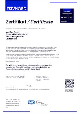 تؤكد هذه الرسالة من الهيئة المبلغة الجديدة TÜV NORD CERT GmbH أن منتجات MediPac GmbH المدرجة في هذه الرسالة (الجدول 1) في طور الحصول على ترخيص من TÜV NORD CERT وفقًا للائحة الأجهزة الطبية للاتحاد الأوروبي (MDR).